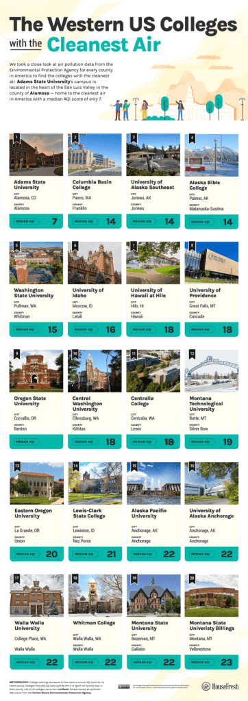 Find out which colleges across every area in the U.S. have the best air quality: