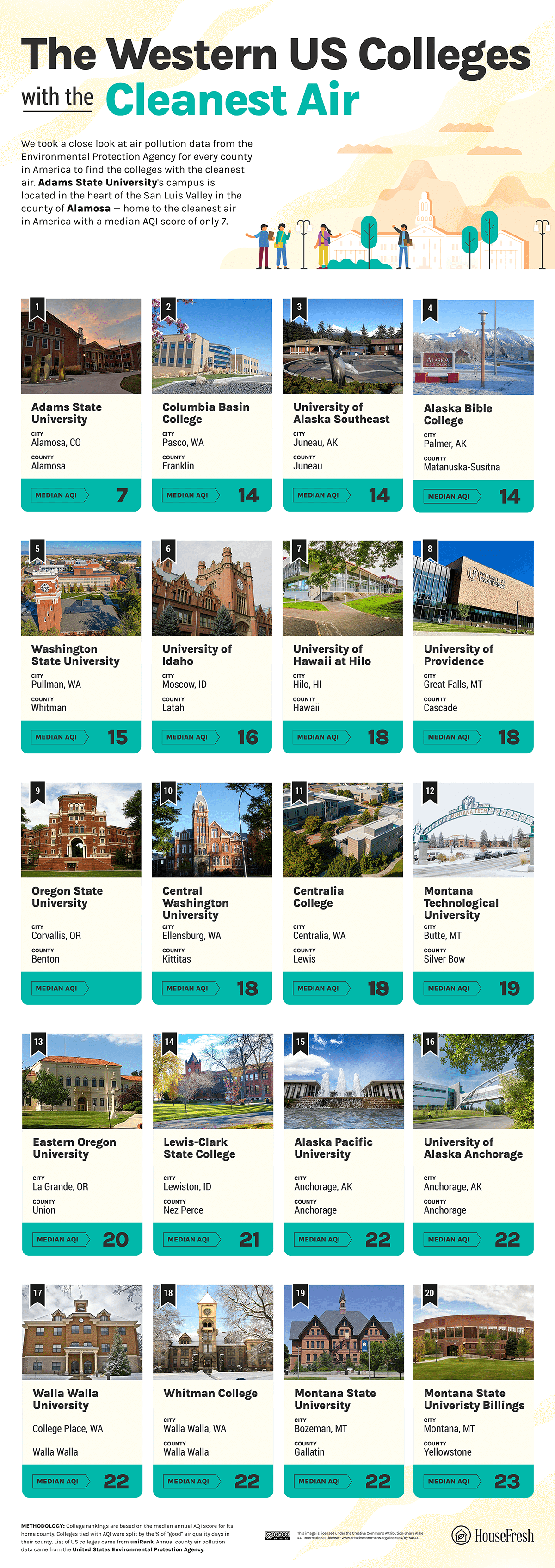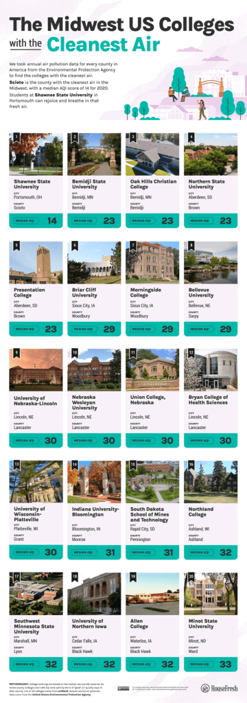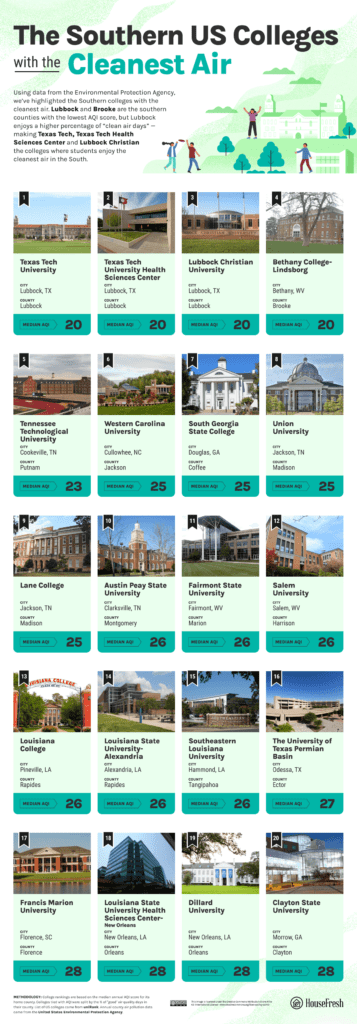 A new study from HouseFresh analyzed Air Quality values of the areas around every college in the country to find which college campuses have the best air quality. The tool to measure air quality is known as AQI and is used by the United States Environmental Protection Agency.