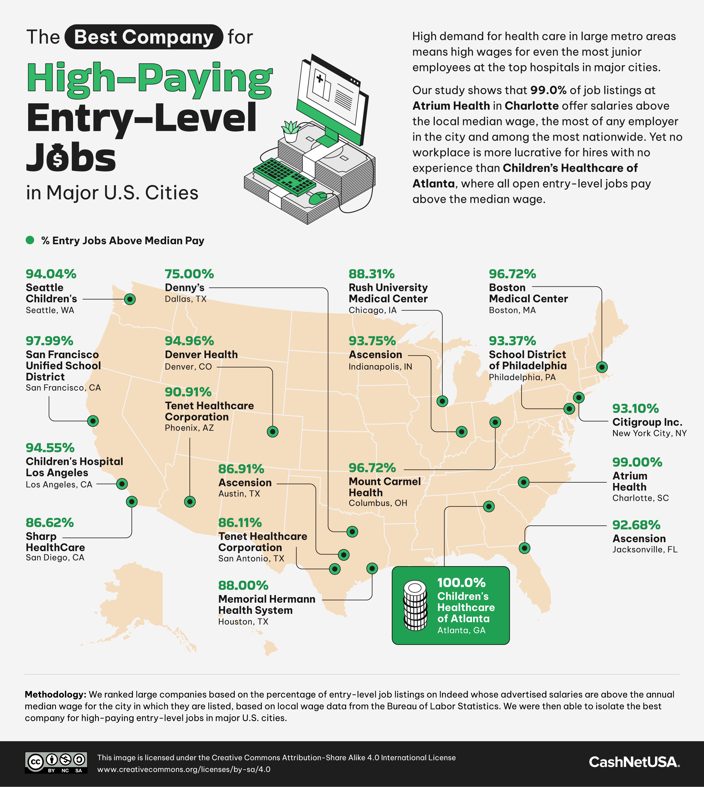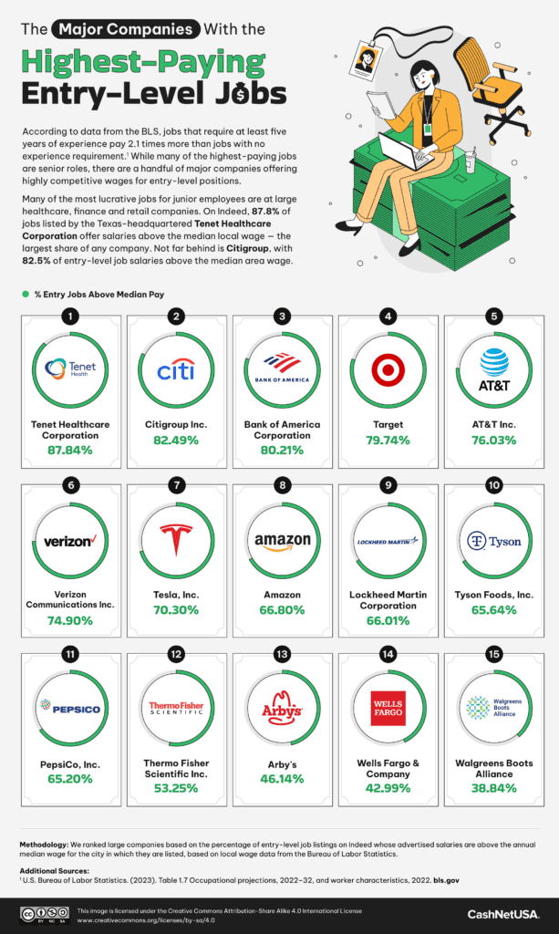 big companies that pay the best entry-level salaries in the U.S. and each state and major city.