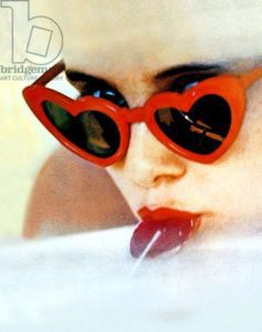 Starring in a bold pair of brightly colored heart-shaped glasses, Lolita casts a striking impression in a movie that’s only become more popular throughout the ages.