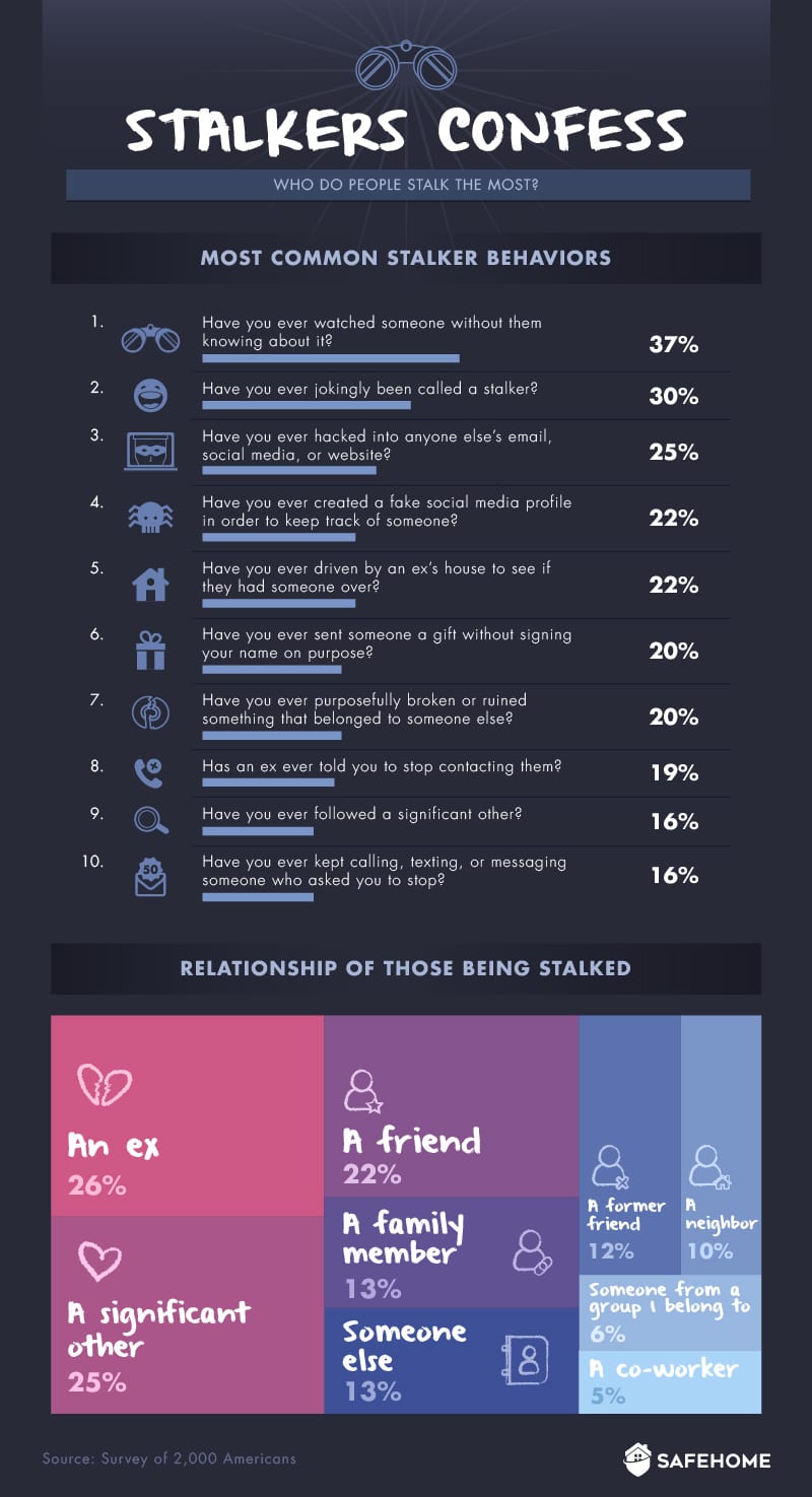 However spooky this data may seem, as long as the people carrying out these behaviors are not doing so with the intent to threaten or scare another person, the behavior is not technically stalking.
